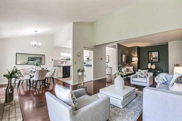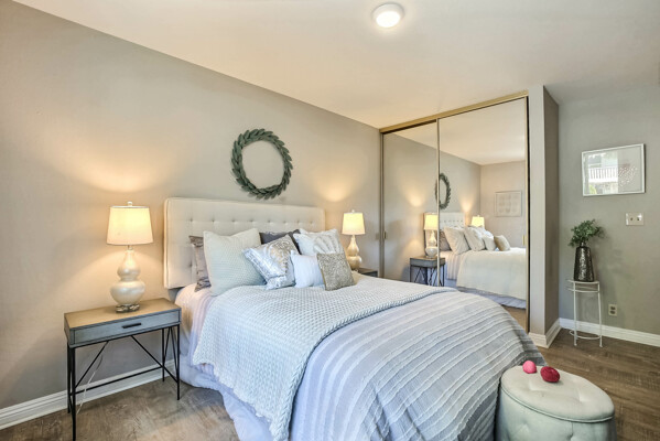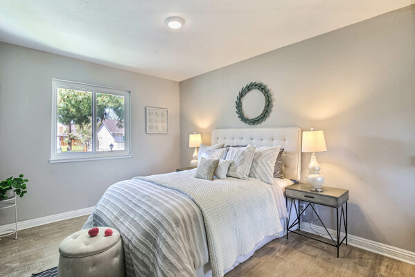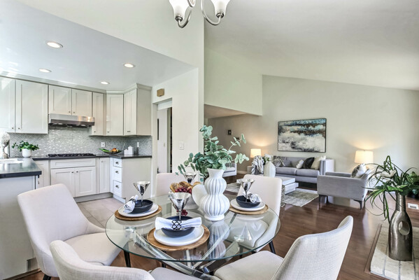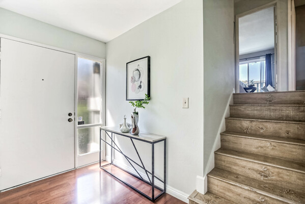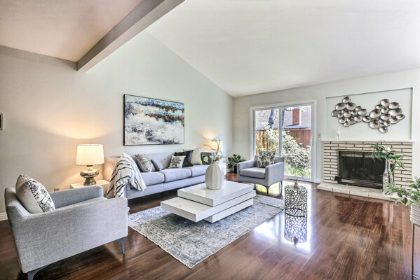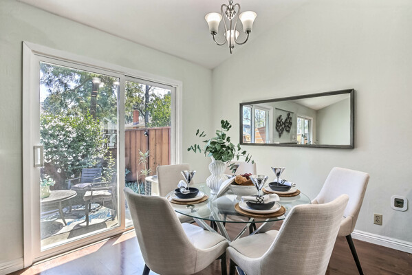 This is a newly renovated unit in the Northpoint community. Close to top-rated schools: L.P. Collins Elementary School, Cupertino Middle, & Fremont high. End unit has spacious living area, high vaulted ceiling & is brightened by natural light. Features a fresh coat of paint, new laminated floors, fireplace, baseboard & recessed lighting. The open-concept kitchen & living room is spacious with two sliding glass doors giving a seamless connection to the backyard. Kitchen has big garden window, stylish cabinetry with countertop that is elegantly matched with the backsplash & the floor tile. The hallway bathroom is earth-tone themed & spacious, with tub, hanging vanity with mirror & light fixture. The bedrooms are spacious with aesthetic accent walls. The primary bedroom has huge windows, & an airy bathroom styled in shades of gray and white. A vanity with a modern flair, granite countertop, mirror & frameless shower enclosure. It also features sunny patio & 2-car garage. Indulge in this Sought-after Northpoint Community amenities such as Club House, Community Pool, Garden/ Greenbelt/ Trails, Gym/ Exercise Facility, Playground, Sauna/ Spa/ Hot Tub, & Tennis Court. Walking distance to Apple spaceship campus and easy access to major highway, parks, dining & shopping centers.