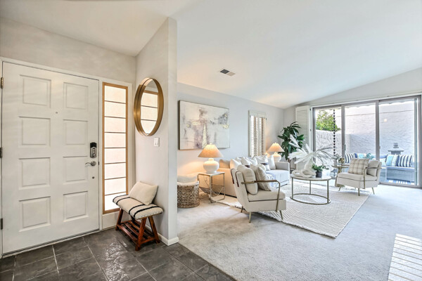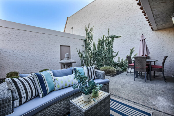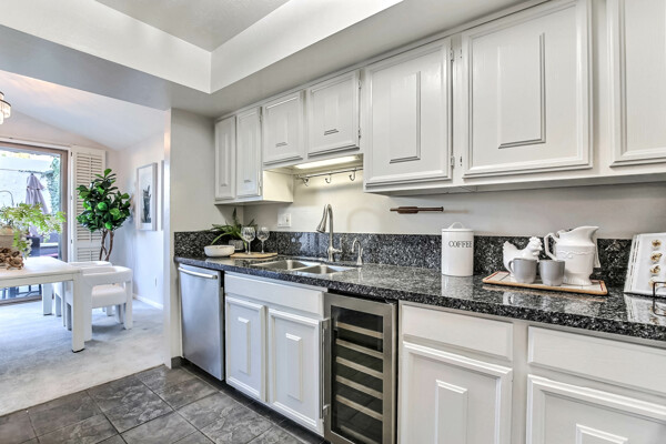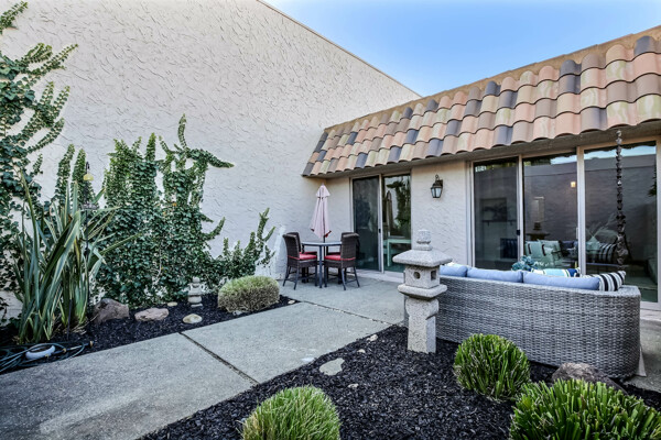 BEAUTIFUL SINGLE LEVEL IN RINCONADA. 400SQ FT PRIVATE PATIO...BEAUTIFULLY DECORATED WITH GRANITE COUNTERS, SLATE TILE IN KITCHEN AND BATHS. VAULTED CEILINGS ALLOW FOR LOADS OF NATURAL LIGHTING ALONG WITH UPDATED SLIDING DOORS AND WINDOWS. PRIVATE MASTER BEDROOM WITH MIRRORED ORGANIZED CLOSETS. BOTH 2ND BEDROOM AND GARAGE HAVE ORGANIZED CLOSET/CABINET. IMMACULATE THROUGHOUT..WASHER, DRYER AND REFRIGERATOR ARE INCLUDED IN THE SALE.