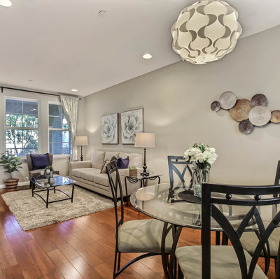 * Open kitchen & living room *Gorgeous maple wood cabinets * Zodiaq Quartz counters + Breakfast Bar * Stainless steel appliances * Dual pane windows * Lots of storages * Recessed lighting * Air conditioning * Tandem 2 Car Garage* BART is nearby.