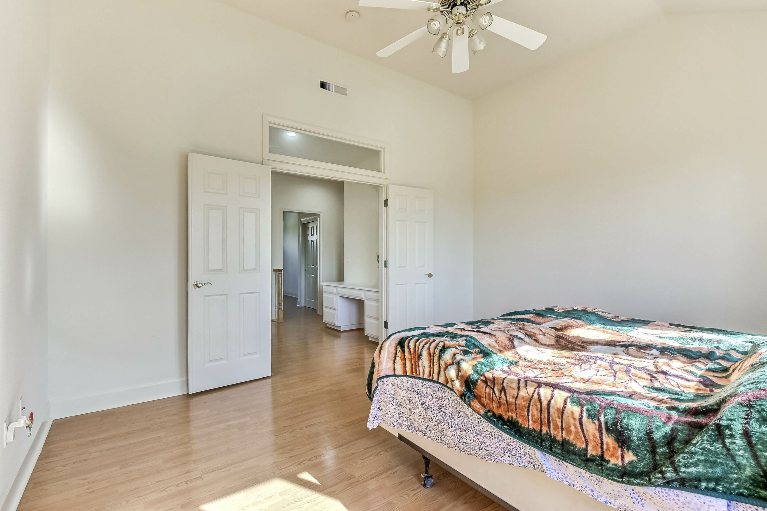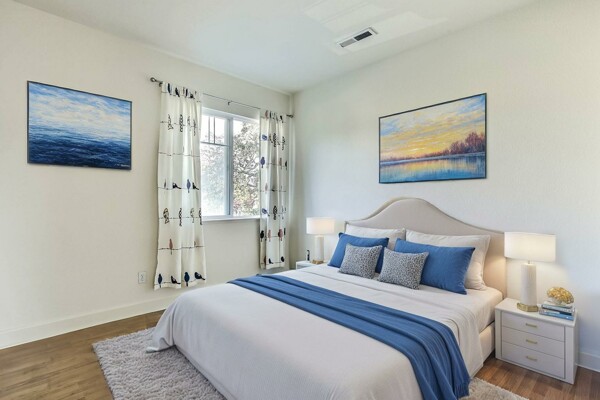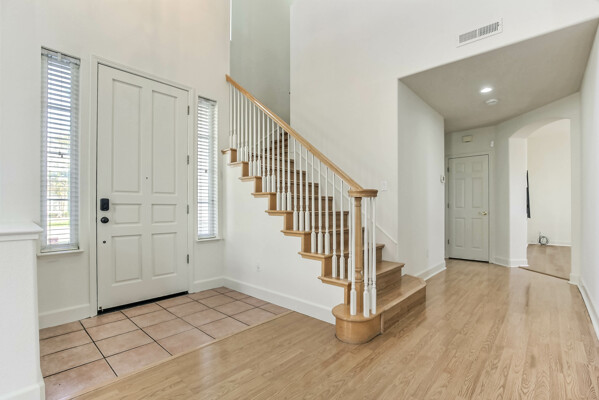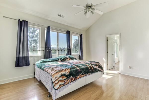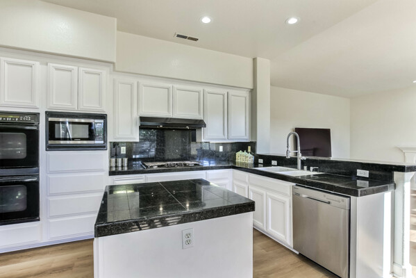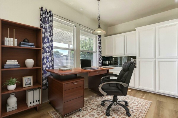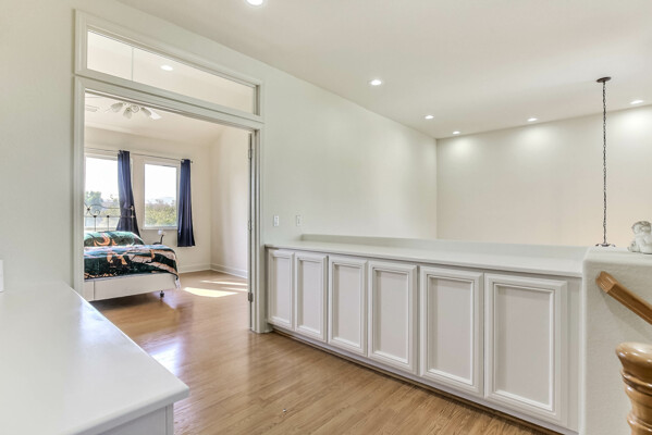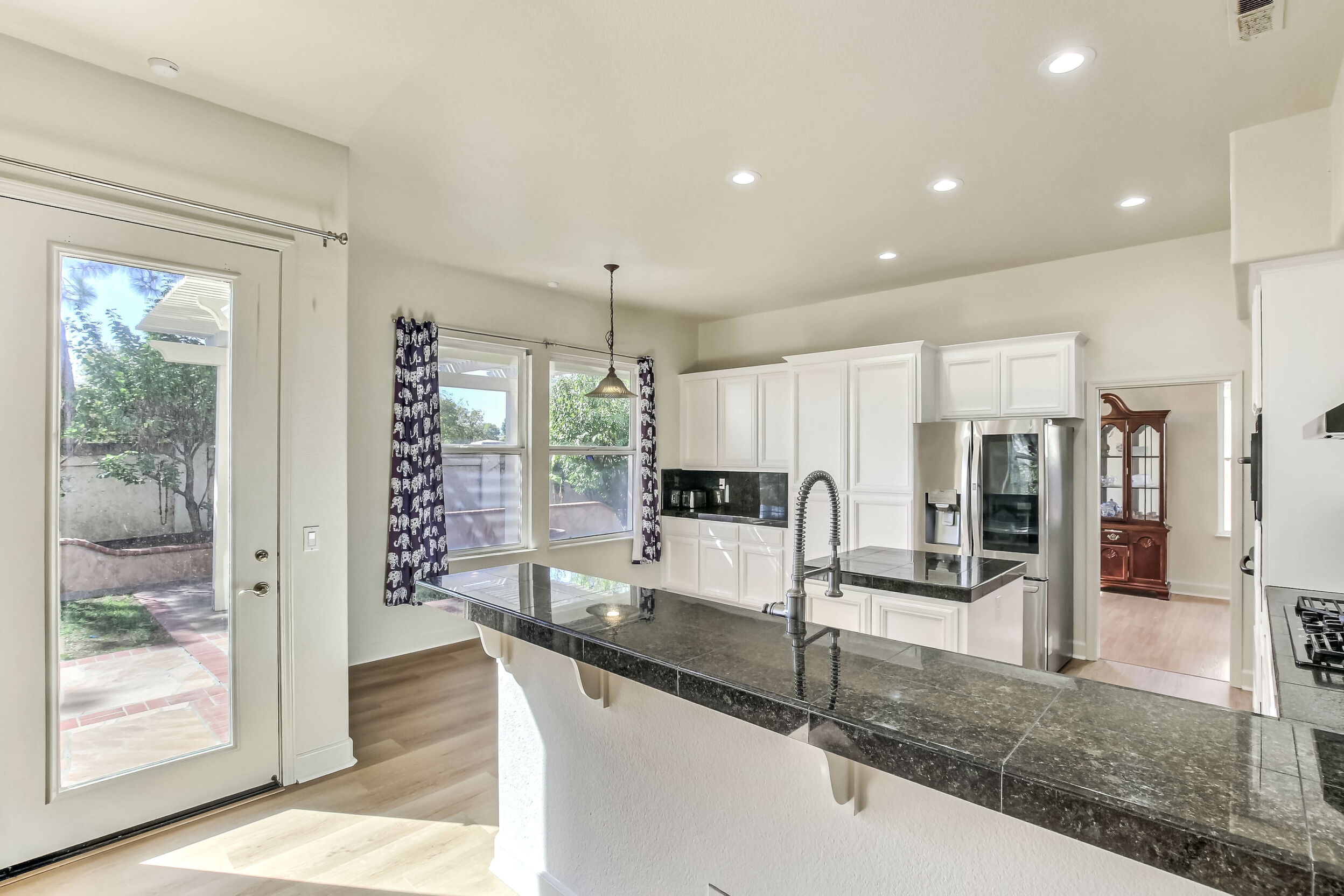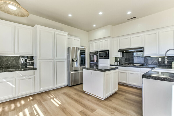 Located at the back of a quiet court, this beautifully maintained 5-bedroom, 3-bath home features vaulted ceilings, gleaming hardwood floors, and a freshly painted interior. The kitchen has been updated with refreshed cabinets, offering a clean and modern touch.
