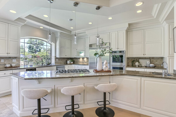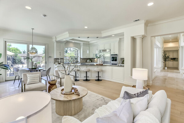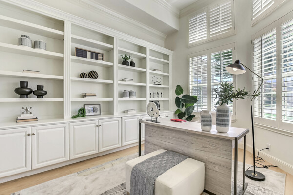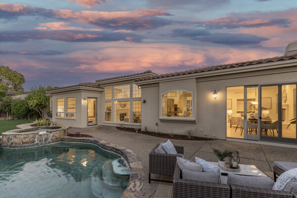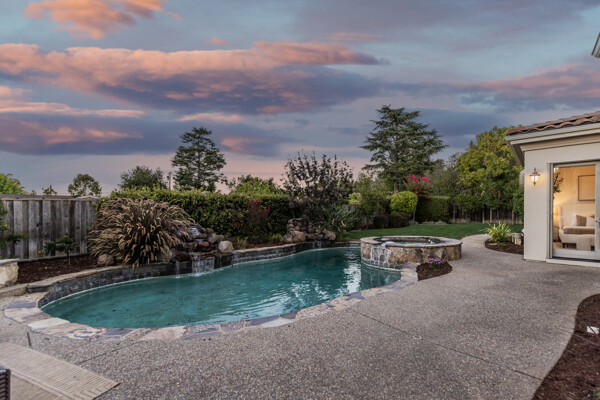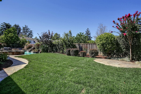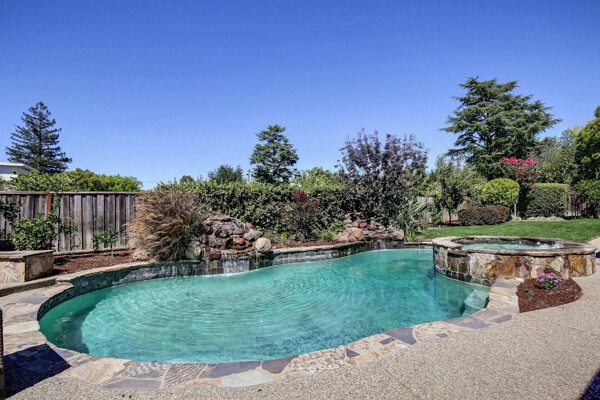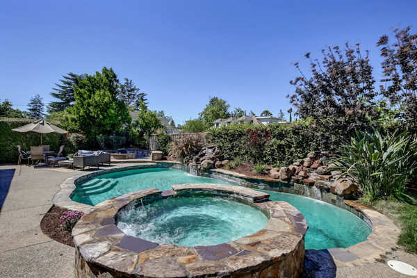 Nestled in Saratogas Golden Triangle, this 2001-built residence blends high ceilings contemporary transitional style. Close to award-winning Argonaut Elem. , Redwood Mid. , Saratoga High, minutes from Saratoga Country Club, Westgate Center, Saratoga Farmers Market, & Hwy 85. Greeted by the entry door with sidelight, transom window, & turret-style library with built-in bookcases. Inside are windows with plantation shutters & recessed lighting, fireplace with mantle & decorative columns. A turret-style dining area. The kitchen has white cabinetry, granite counters, a dry bar, & premium stainless steel appls: KitchenAid refrigerator, brand new KitchenAid double oven, Miele cooktop, under-cabinet range hood, & LG dishwasher. The family has cozy fireplace, custom cabinetry & direct backyard access. The primary suite has its own backyard access, 2-way fireplace, walk-in closet, & spa-like bath featuring a double sink vanity, frameless walk-in shower, jetted tub & water closet. 3 additional bedrooms, including 1 ensuite with a private bath. A hallway bath with a shower & tub, & powder room, skylight, & built-in desks. A dedicated laundry area, 3-car garage & backyard with 2 waterfalls, swimming pool, raised spa spillover & fire pit. All in one of Silicon Valleys most desirable neighborhood.