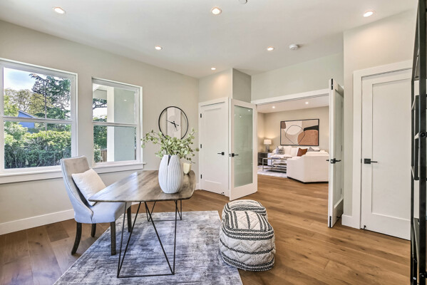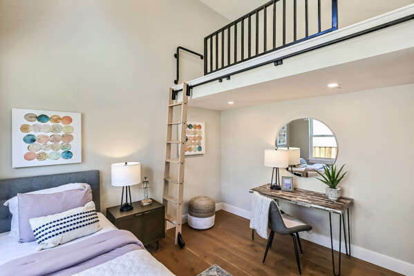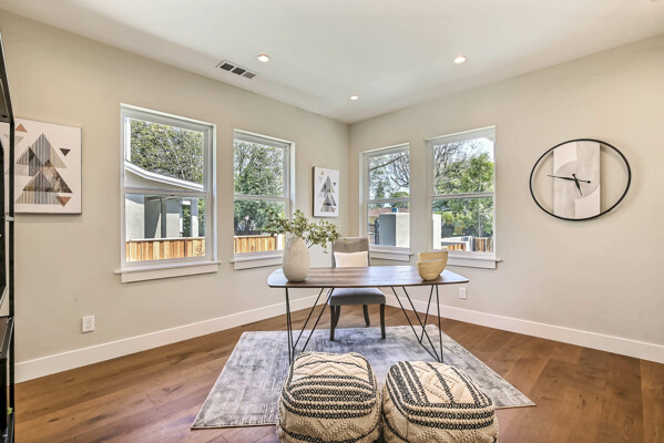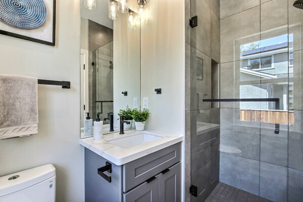 A brand new 2024 contemporary home in a prime location. Close to one of the world's top schools, Stanford University & excellent Menlo Park Schools: Laurel/Encinal Elementary, Hillview Middle, Menlo-Atherton High. Boasting a soaring high vaulted ceiling, numerous windows & a huge kitchen skylight the home is bathed with natural light. The home features energy-efficient recessed lighting, hardwood floors & a family room. An open-concept living room & kitchen features a shaker-style cabinetry & is equipped with premium stainless steel Thermador appliances including a cooktop, dishwasher, exhaust fan, microwave, oven & refrigerator. It also has a pantry, waterfall Island, & quartz countertop. The master bedroom has a walk-in closet, Its earth-tone theme bathroom has a double sink vanity with a quartz countertop, an extra-large mirror & light fixtures. A curb less shower enclosure, accent wall tile, & freestanding tub. Bedrooms are equipped with built-in closets, one is ensuite & another features a charming bunk bed. Hallway bath features a stylish vanity with a quartz countertop. Other features are, a laundry area, hallway closets, coat closet, a detached two-car garage, a fenced yard. With easy access to Highway 101 & El Camino Real.
