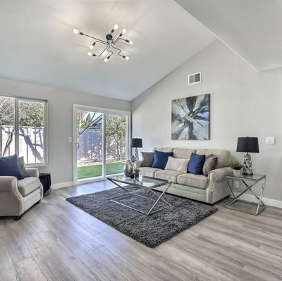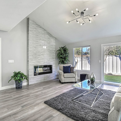 whether rain or sunshine. Inside is a fully remodeled home with brand-new appliances, a center-piece electronic fireplace, and fresh, modern bathrooms. The owners have tastefully made the upgrades attractive for first-time buyers with a move-in ready home.