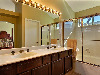 Dark hardwood flooring and plantation shutters add warmth and beauty to the home. The home also features a formal living and dining room, and a family room with built-in entertainment center and updated cabinetry with beveled glass. Custom tile in the master bath and built-in bookshelves in the hall. Covered patio and water filtration system, as well as solar screens are just a few of the upgrades.